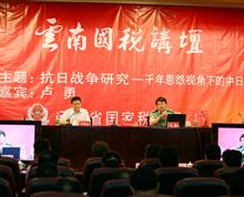 2015年 6月26日,省国税局以“云南国税讲坛”(第52讲)为学习宣传阵地,举办了纪念抗日战争胜利70周年专题讲座,邀请国防大学教授、央视军事频道特邀节目主持人卢勇讲授《抗日战争研究—千年恩怨视角下的中日战争》。大家一致认为要传承和弘扬好以爱国主义为核心的民族精神,凝聚人心、坚定信心,为实现中华民族伟大复兴的中国梦,成功跨越税收现代化的伟大征程,牢记使命,奋发有为,作出云南国税人应有的贡献!